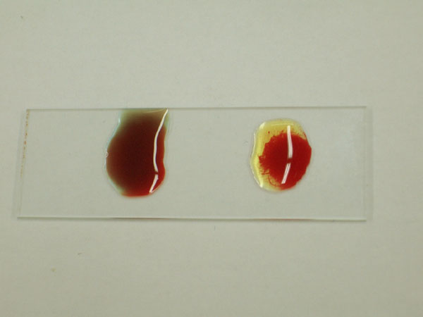 總之要滴三滴血:一滴拿去做血液抹片,染色后放